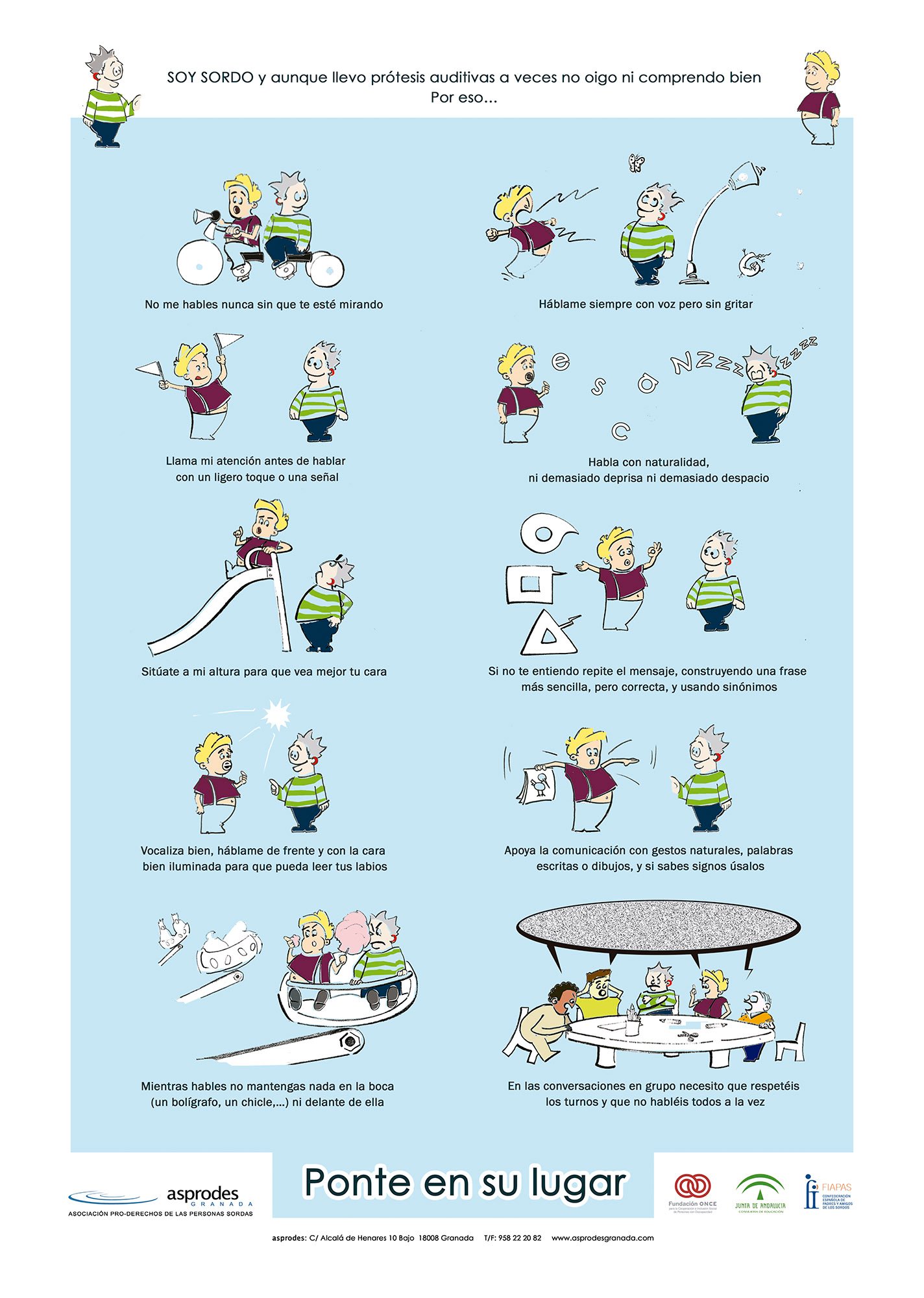 Cartel ilustrado: pautas para comunicar con personas sordas